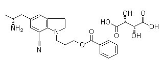 英文品名: 5-[(2R)-2-Aminopropyl]-1-[3-(benzoyloxy)propyl]-2,3-dihydro-1H-indole-7-carbonitrile (2R,3R)-2, 3-dihydroxybutanedioate